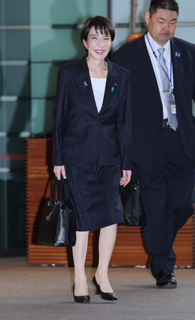 〔写真説明〕首相官邸に入る高市早苗首相=18日午前、東京・永田町