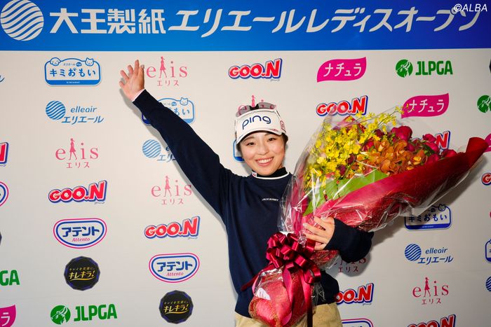 「去年はなかなか勝てずに苦しかった。そこから、ここまで来れるなんて想像できなかった。小さなころは『賞金女王になりたい』って書いたりしていたけど、ホントになれるなんて…。たくさんの方に感謝したいと思います」