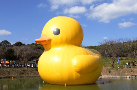 〔写真説明〕展示されたラバー・ダック=15日、大分県国東市