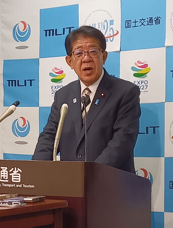 〔写真説明〕マンションの取得状況調査について記者会見で説明する金子恭之国土交通相=25日午前、国交省
