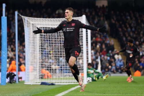 さらに54分、レヴァークーゼンが自陣でのパスワークでマンチェスター・シティのプレスを打開。中盤でボールを受けたティルマンが左サイドにフィードを送り、一気に局面を裏返す。グリマルドがマザにバックパスを出すと、右足でゴール前にアーリークロスを配球。インスイングのボールをパトリック・シックが頭で合わせ、レヴァークーゼンが貴重な追加点をマークした。
