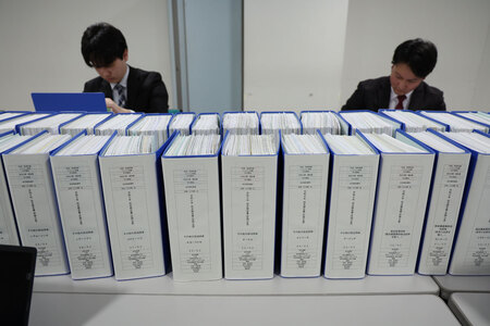 〔写真説明〕公開された2024年の政治資金収支報告書=26日、東京・霞が関の総務省
