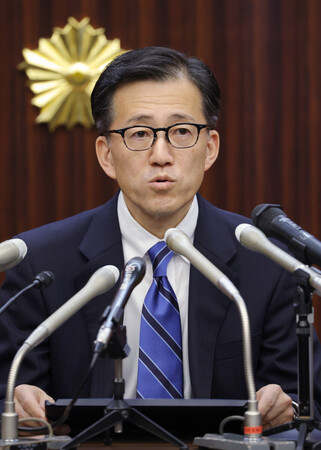 〔写真説明〕連続強盗の指示役逮捕で合同記者会見に臨む警視庁の親家和仁刑事部長=5日午前、東京・霞が関の警視庁