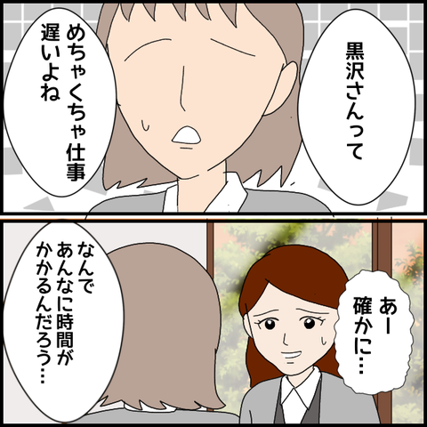 せっかく機嫌がよかったのに、上司から仕事の遅さを指摘されてしまった黒沢さん。