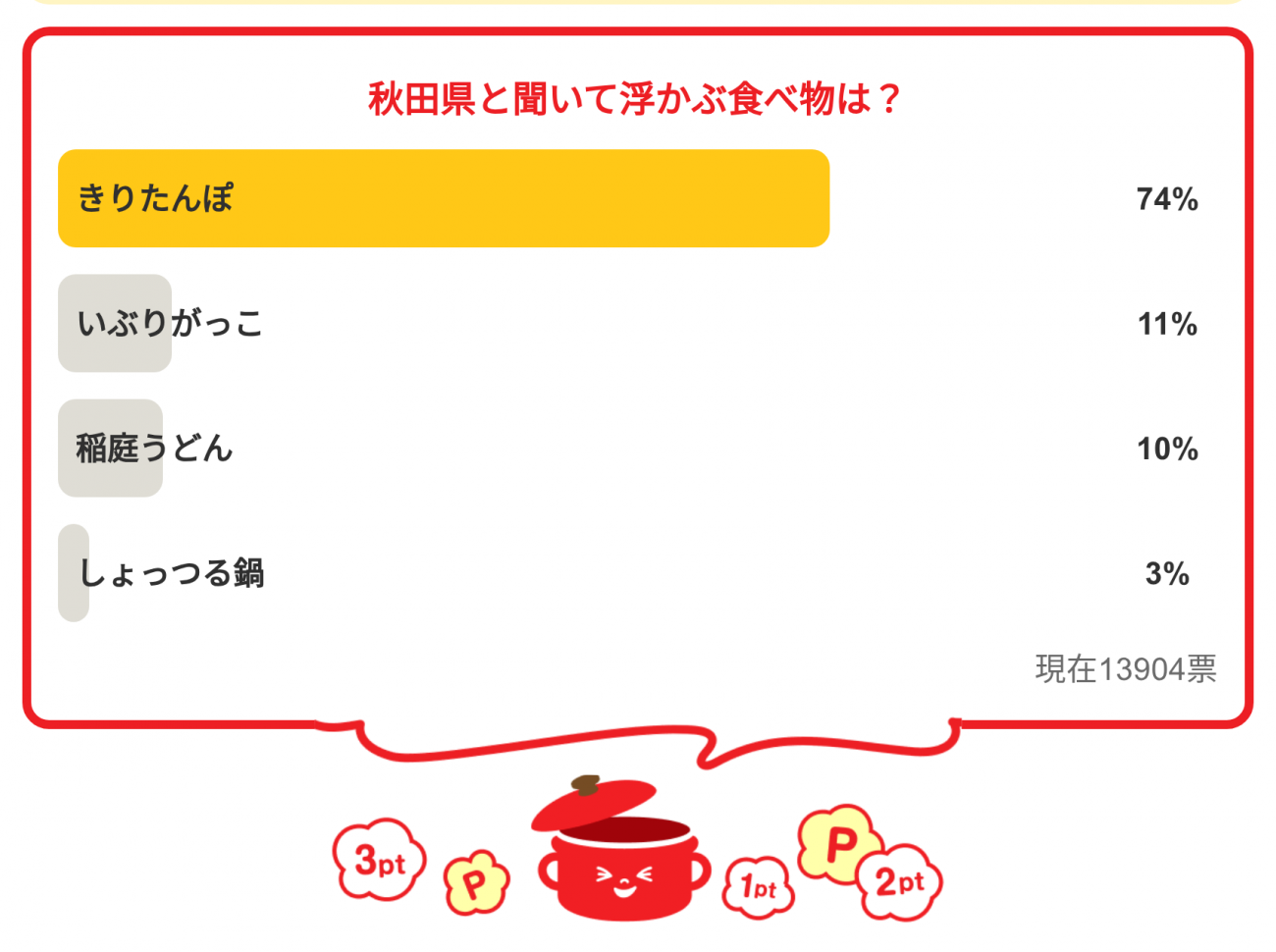 ・「秋田県と聞いて浮かぶ食べ物は?」の結果は…