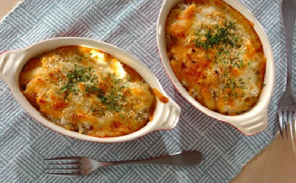 面倒なイメージのドリアも、このレシピなら驚くほど簡単! ソースはクリームコーンをベースに材料を混ぜるだけで完成するので、初心者でも失敗しません。ご飯の上にソースをかけたら、あとはオーブンにお任せでOK。大皿で作り、みんなで取り分けながら食べても楽しいですね。