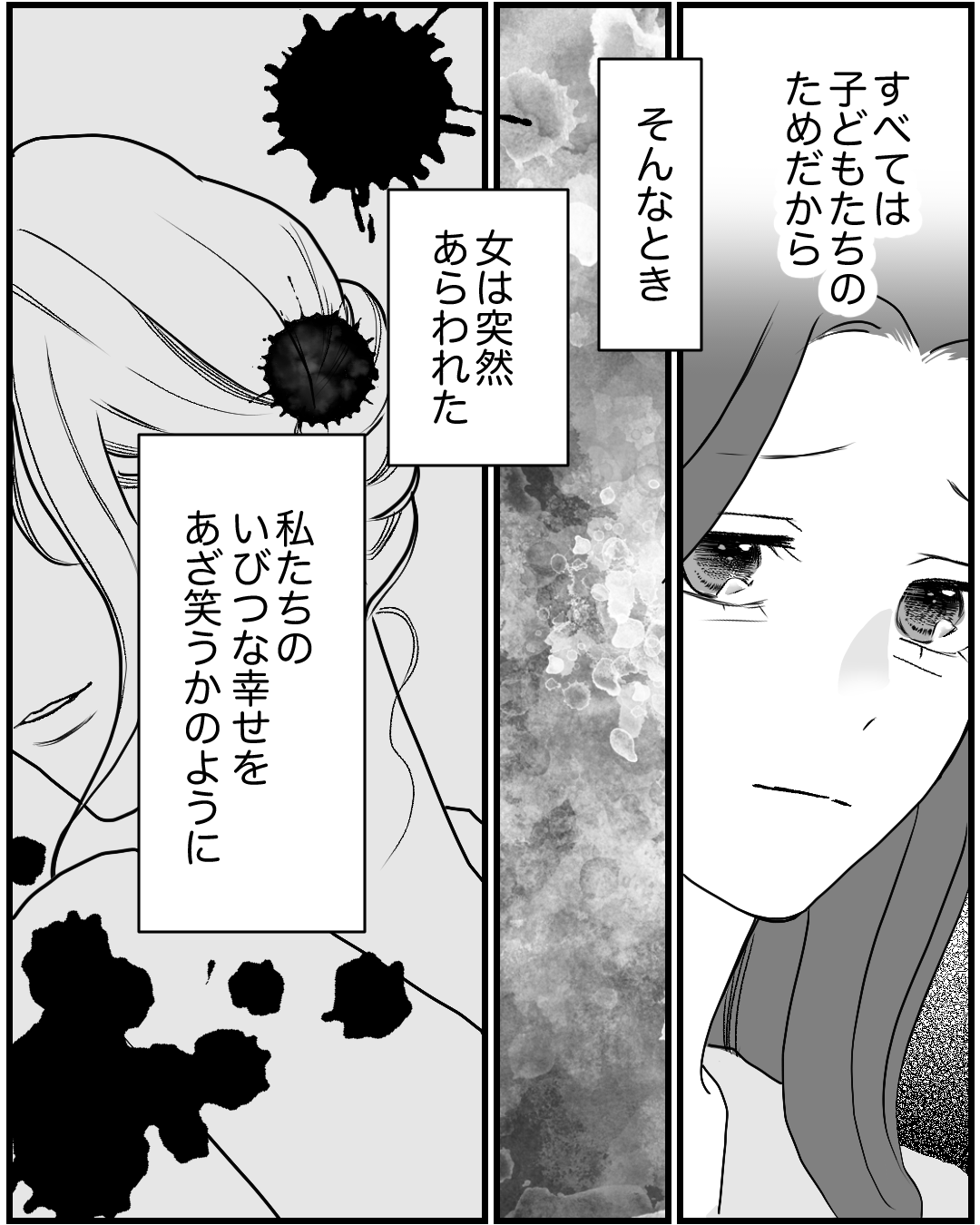 妻はこの夫の本性に気づいた時、どんな決断をくだすのでしょうか。しかもこの後、相手の女性が家族に近寄ってくるのです…。