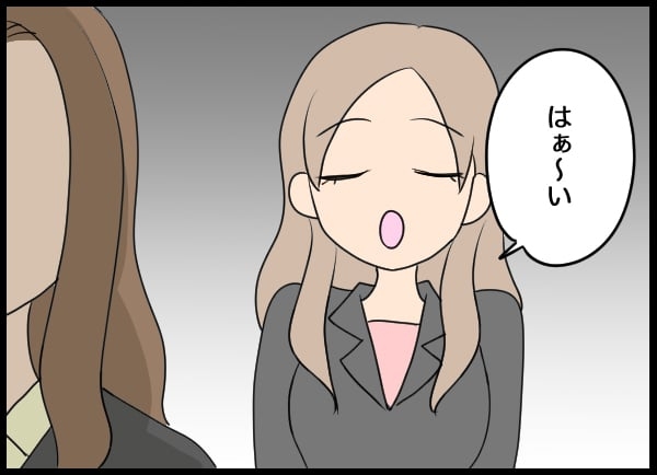 前の話を読む。同期の小野を「先輩と思え」と言われた横田。不満を顔に出すと自分のモノマネで返され、さらにキレて離席するなどまるで子ども。秘書課のメンバーはそんな横田をうまくあしらう。
