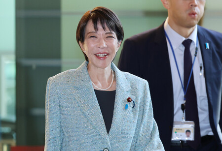 〔写真説明〕首相官邸に入る高市早苗首相=8日、東京・永田町