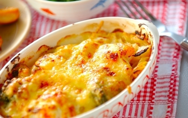 ホワイトソースから手作りする、本格的なマカロニグラタン。クリーミーなソースとプリッとしたエビ、ブロッコリーの歯応えなどが三位一体となり、リッチな洋食を楽しめます。エビを牡蠣に、マッシュルームをシメジに変えたりと、旬の食材でアレンジするのもおすすめです。