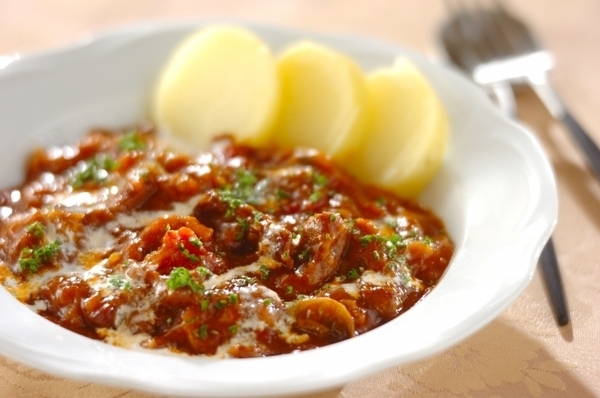 牛肉の存在感抜群のビーフストロガノフは、デミグラスソース缶を活用すると手軽に作れます。赤ワインやトマト缶などと一緒に煮ると、旨みの相乗効果で深い味わいに。牛肉は火を通しすぎると硬くなるので、軽く炒めたらいったん取り出して、あとで加えましょう。やわらかく仕上がります。