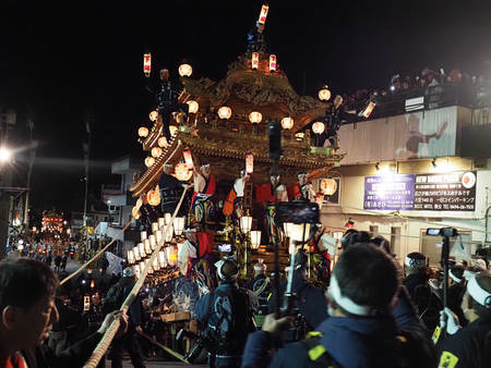 300年以上の歴史を持つ秩父神社(埼玉県秩父市)の例大祭「秩父夜祭(よまつり)」が、今年も盛大に行われた。ちょうちんやはやし手を乗せた6基の山車が秩父市役所前に集まり、勇壮な姿を披露した。