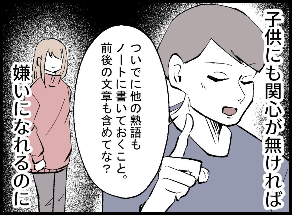 ふと見ると、夫は息子と一緒に勉強をしている。その姿を遠くから眺めながら、妻は思います──「もし子どもにまで無関心だったら、もっと簡単に嫌いになれたのに」と。