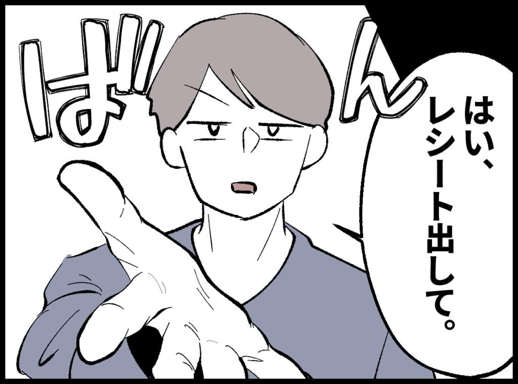家計管理に厳しい夫は、レシートを細部まで確認しながらギラついた目で金額をチェックします。