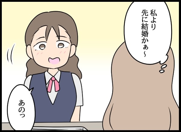 結婚という理由を聞いたにもかかわらず、横田は祝福する様子もなし。それどころか「式に来てね」と言われても「おめでとう」のひと言もありませんでした。