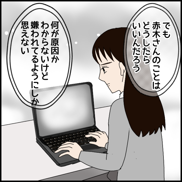 白山さんがキレると、黒沢さんは焦って謝罪。しかし数日後、赤木さんから「もう少し黒沢さんのフォローをしてあげて」と指導される。すでに黒沢さんの3倍量の作業をこなしているにもかかわらず、その後も指導が増加。白山さんは、常に不安を感じながら仕事するようになっていく。
