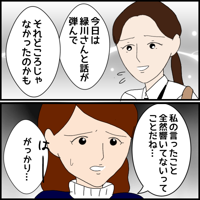 ある日、上司が黒沢さんの仕事の遅さを指摘。その嫌味に同調した赤木さんをいじめだと敵視するようになる。白山さんは2人の仲を取り持とうとするが、うまくいかない。さらに不機嫌な黒沢さんに「最近怒ってること多いよね?」と声をかけると、「白山さんには関係ない」と言われる。