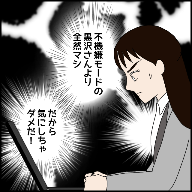 年下の同僚・黒沢さんの彼氏は、一年前の合コンで白山さんに猛アピールしていた栗田さんだった。それを知った黒沢さんは嫌なことがあるたび不機嫌になり、白山さんは毎朝、彼女の機嫌を気にするようになってしまう。