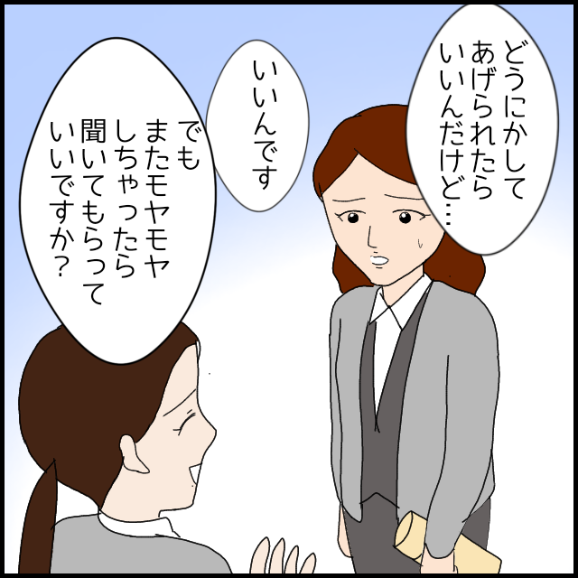 ある日、上司が黒沢さんの仕事の遅さを指摘。同調した赤木さんを、黒沢さんはいじめだと敵視するようになる。白山さんは仲を取り持とうとするが、なぜか赤木さんから「もっと黒沢さんをフォローして」と指導される。