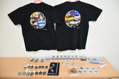 〔写真説明〕新たに発売する「頭文字D」コラボグッズ=10日、群馬県渋川市
