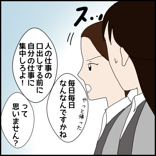 赤木さんの冷たい態度は続き、黒沢さんは白山さんの彼氏にまで接触。黒沢さんは白山さんを職場でも私生活でも孤立させようと、噂話を拡散し続けていた。一方、白山さんは、この日も赤木さんから厳しい指導を受けていて…。