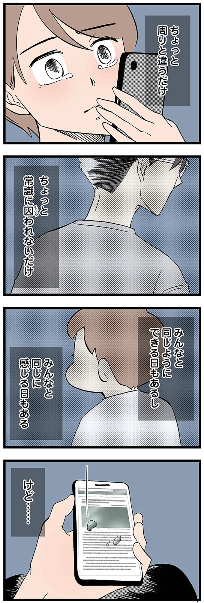 少し周りと違うだけで、みんなと同じようにできる日もあるし、みんなと同じに感じる日もあるのに…。