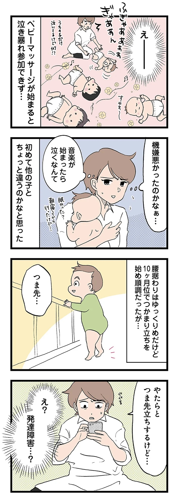 『発達障害、認められない親 わが子の正解がわからない』はこちら初めての子育てに奮闘するさくら。しかし長男シュウ君は発語が遅く、大暴れすることも多いため「手がかかる子」ではなく特別なケアが必要かもしれないと不安を抱えていたのでした。