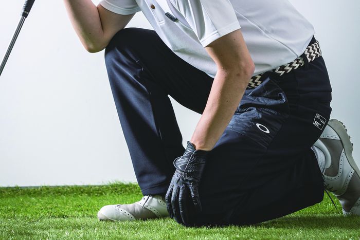 「もし試着できる機会があるなら、ボトムスを履いた状態でしゃがんでみてください。ラウンド中はグリーン上でのライン読みやボールを拾うときなど、しゃがむシーンが多くあります。ここでスムーズに生地が伸びてくれるかで、ラウンド中のストレスが大きく変わりますので、ぜひチェックしてみてください」