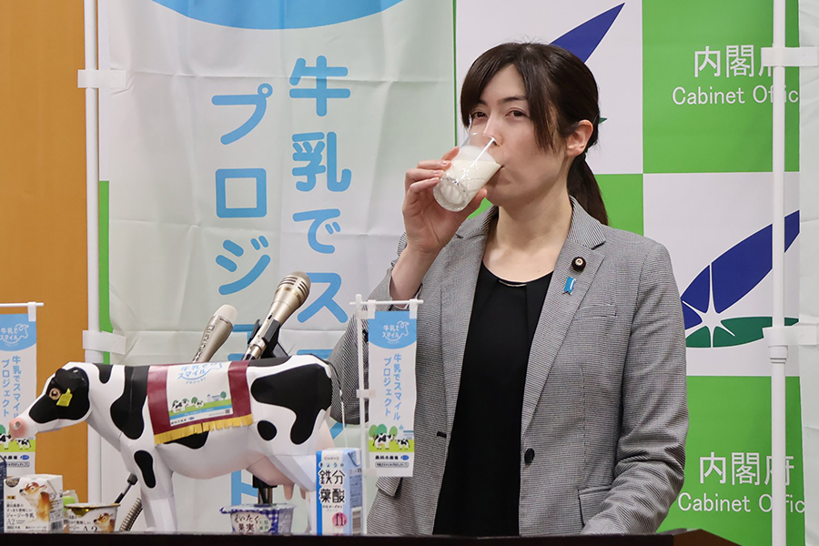 「鈴木農水大臣の意気込みに応えていくためにもですね、私も、あの、率先して、えー今日は牛乳を、飲まさせていただきたいと思います。これが牛乳です。じゃあ、これから飲みます」