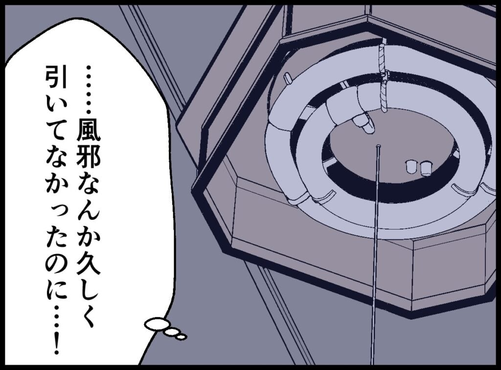 ひどい悪寒に襲われながら目を覚ました妻は、昨夜のレシート探しが風邪の原因に違いないと悟ります。