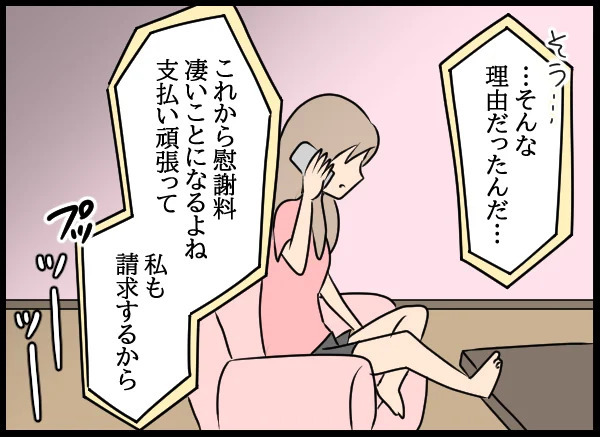 カナエは逆ギレする横田に、冷静に「慰謝料を請求する」と告げ、電話を切りました。