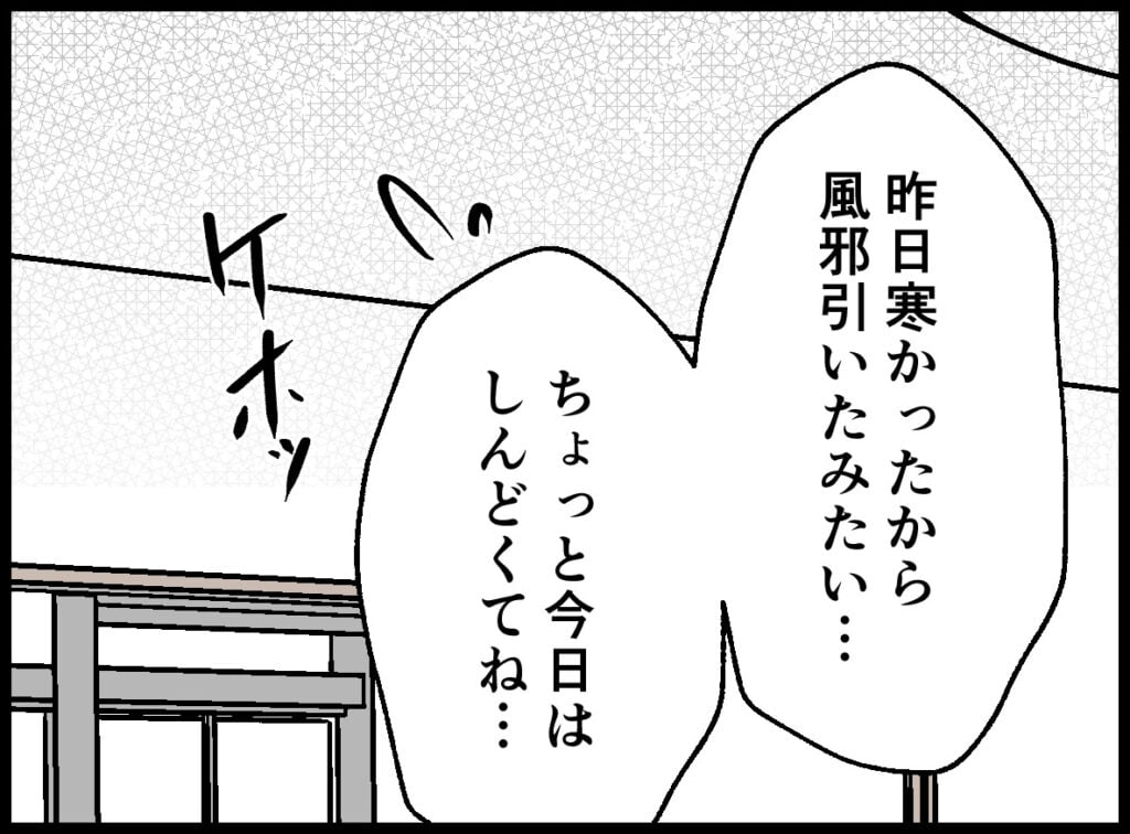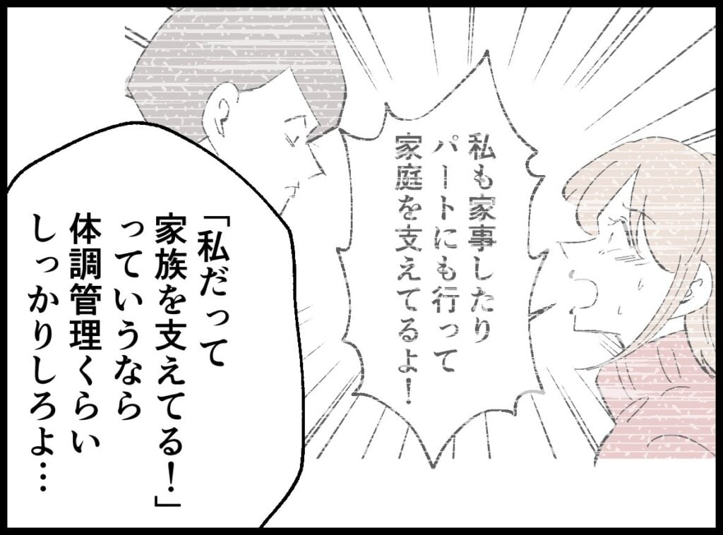 そして夫は最後に「頼むから今日中に治せよな」と言い残し、部屋を出て行ってしまいます。妻のつらさと、夫との温度差だけが静かに残るのでした。