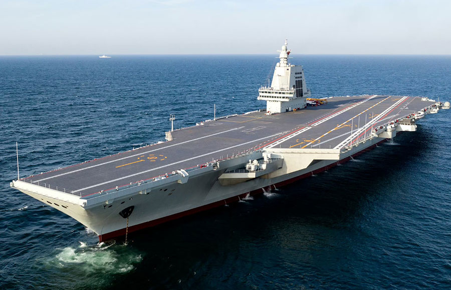 同艦は11月5日に就役したばかりの最新鋭空母で、人民解放軍海軍の空母としては3隻目となります。最大の特徴は、これまでの2隻のようなスキージャンプ式飛行甲板ではなく、艦首から艦尾まで続くフラットな全通甲板を採用し、電磁力で作動するリニアカタパルトを搭載している点です。これはアメリカ海軍のフォード級空母に続き、世界で2例目の採用となります。