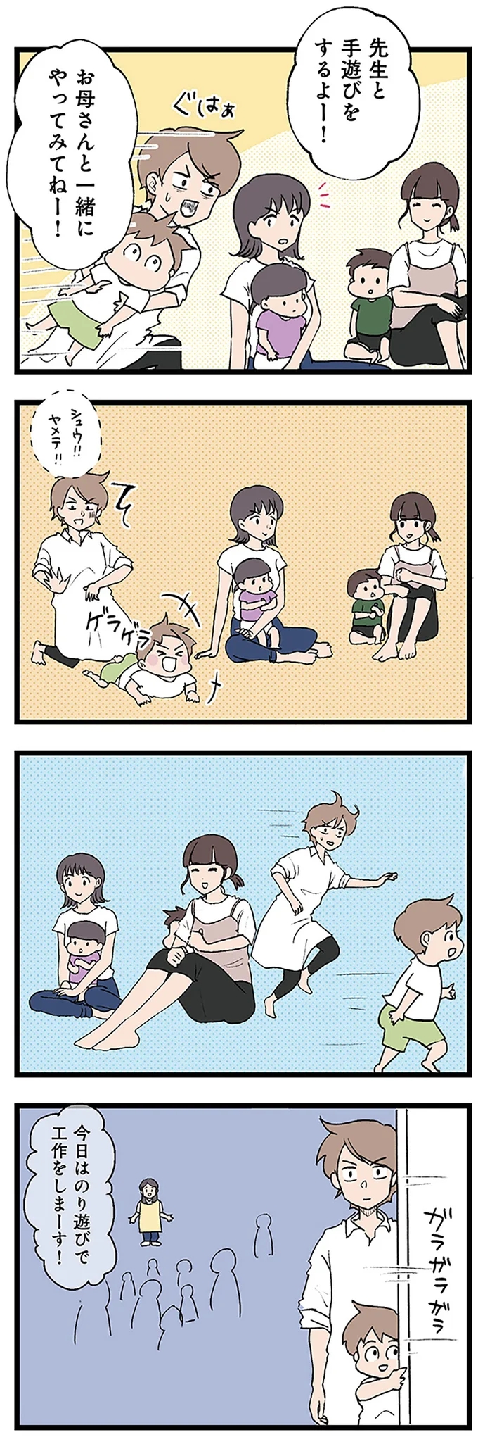 子育てクラブでも、シュウは自由に動き回り、さくらは追いかけることで精一杯で、他のママたちと足並みをそろえるのが難しい状態なのでした。