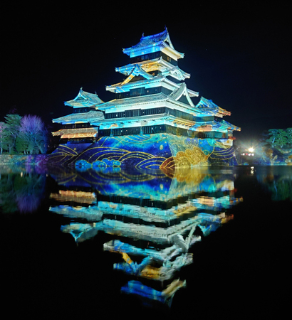 松本城でプロジェクションマッピング 長野県松本市 2025年12月19日 15:20 時事通信社 中 大 長野県松本市の国宝・松本城で「プロジェクションマッピング」が開催されている。5重6階の天守にダイナミックで幻想的な映像が投影されている。開催期間は三つに分かれており、それぞれ異なるテーマの演出を楽しむことができる。 2026年1月7日までの第1期が「時を超える城―光の物語」、同8日から28日までの第2期が「光の記憶―名場面ダイジェスト」、同29日から2月15日までの第3期が「光咲く天守―春の幕開け」。【もぎたて便】 〔写真説明〕松本城のプロジェクションマッピング=15日、長野県松本市