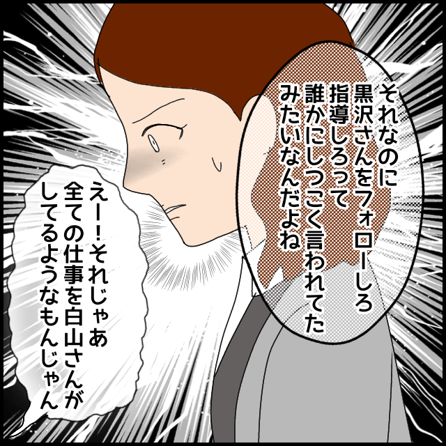 一方、「教わってない仕事があったなんてことがないように」と言い出す黒沢さん。一体、どこまで被害者ぶるのでしょう。完全に加害者側だというのに…。