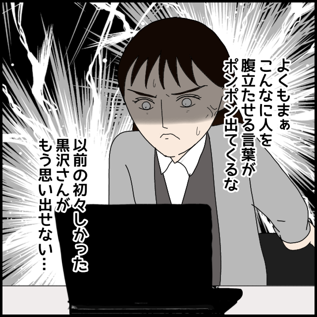 もとはと言えば自分のせいなのに、白山さんにキツく当たる黒沢さん。たしかに、初々しかった彼女が思い出せないレベルです。
