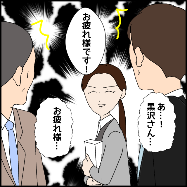 事実を知り、黒沢さんを「信用できない」と見限った白山さん。さらには彼氏に趣味のアクセサリー作りを仕事にするのもアリだと言われ、退職願を提出する。社内では白山さんの退職に関する噂が広まり、“赤木さんのせい”との説も浮上。一方、白山さんが所属する総務課では、上司が黒沢さんについて小言を言っていて…。