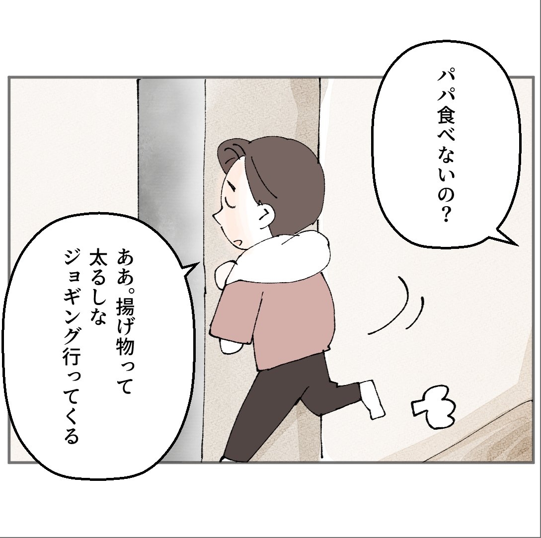 そんな聡は今夜、夕食当番。妻が残業、息子も塾で帰宅が遅いので、娘に先に夕食を食べさせますが、自分はランニングへ出かけます。小5の娘が心細そうな表情で「家にいて」と言うのに…。