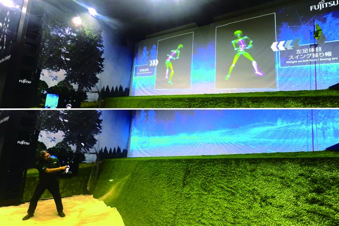 最新AI技術によるスイング解析やレッスンの提案などを行うAIGIA(エイジア)システムは、マーカーや特別なスーツなどを装着することなく、カメラの前に立つだけで骨格の動きを自動認識・数値化できる。富士通の骨格認識AI(FMMC)によって得られたデータと、AIGIAのスイング解析アプリケーションを連携させ、その人の課題点を明確化。解析結果に基づき、最適な改善策をその場で提案してくれるという。