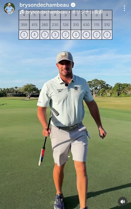 ブライソン・デシャンボー(米国)が自身のインスタグラムを更新。「That was fun」(楽しかったよ)と一言だけ記すと、ハーフで9アンダーを記録したプレーを動画で投稿した。