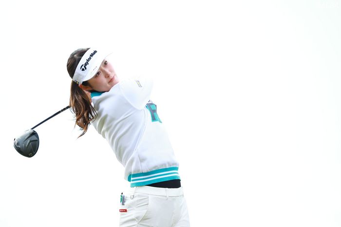 やや打ち下ろしの18番。「左横の風」を計算してフェアウェイ左サイドをターゲットにする。「めっちゃ芯を喰ったわけではないのですが、飛んでそうとは思っていました」。快音を響かせて狙い通りに打ち出すと、ほぼストレートな弾道は風に流されてフェアウェイ右サイドで止まった。その時点でトップだった森村美優を10ヤード以上アウトドライブするショットだった。