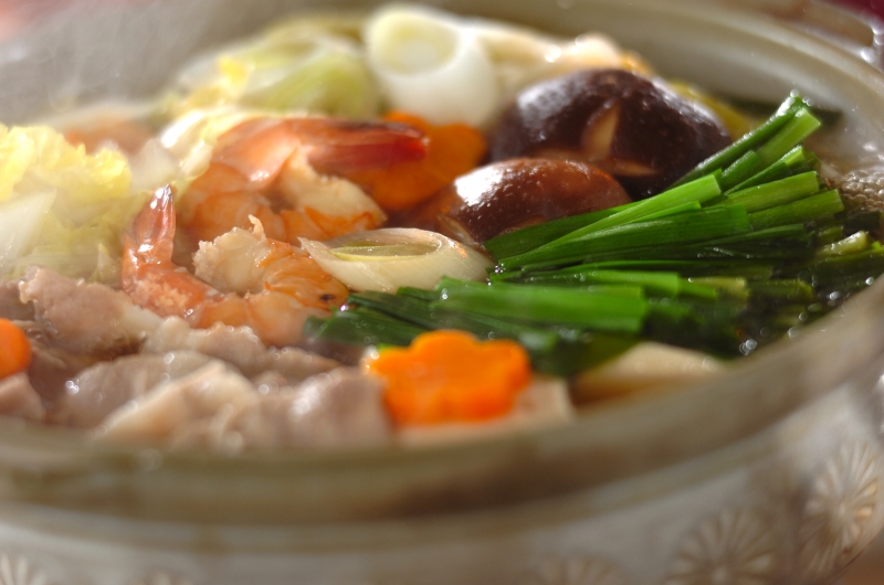 1. 鍋に<合わせだし>を入れて中火にかけ、煮たってきたら<具>を加え、火の通った物から、刻みネギ、ポン酢しょうゆ、一味唐辛子でいただく。
