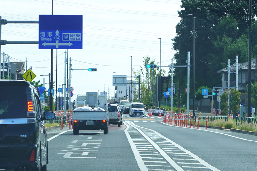 2月に開通したのは約2kmのうちの西側、都道24号練馬所沢線から、西東京市境の福泉寺通りまでの約1kmです。これにより西東京市内の既存開通部と接続し、三鷹や調布に通じる南北の4車線道路「伏見通り」(調布保谷線)に直結しました。