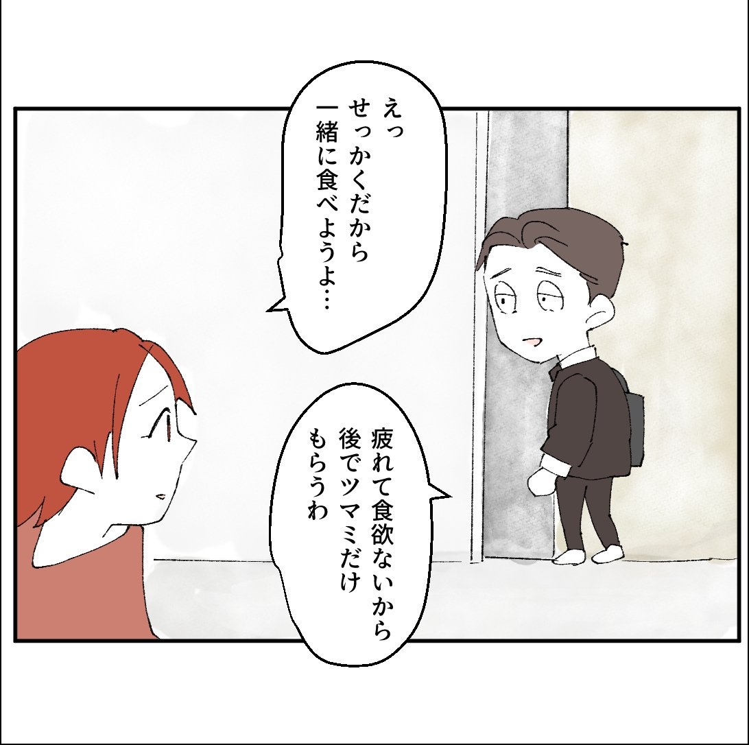 妻と娘は自分の早い帰宅を喜んでくれているのに…。せっかくだから一緒に夕食を食べようと言われても断ってしまうのでした。