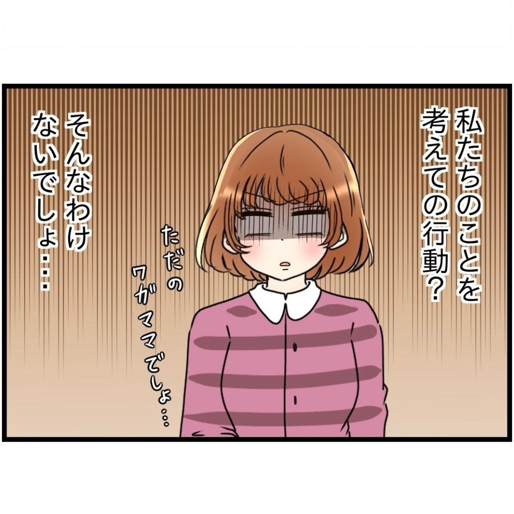 息子を無理やり書道教室に通わせようとしたり、家事をしないのに文句だけつけたり、挙句の果てに「住まわせてやっている」と言いだすなど、なにかと横暴な態度をとる義母。しかし夫は「もう歳だから」と母をかばうのだった…