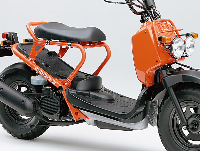 こういった傾向を受け、ホンダは「スクーターもネイキッドスタイルに」と、プラスチックカバーなどをあえて持たない斬新なスクーターを打ち出しました。2001(平成13)年発売の「ZOOMER(ズーマー)」です。