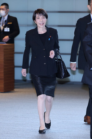 〔写真説明〕首相官邸に入る高市早苗首相=7日、東京・永田町