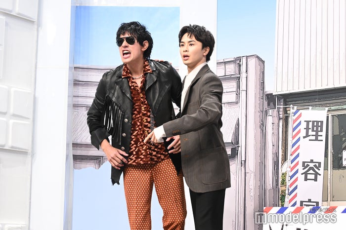 【モデルプレス=2026/01/08】俳優の中島歩、草川拓弥(超特急)、高良健吾、阪元裕吾監督が8日、都内で行われたテレ東系ドラマ25「俺たちバッドバーバーズ」(9日スタート/毎週金曜深夜24時42分~)記者会見に出席。会見冒頭、寸劇が繰り広げられた。 【写真】中島歩、劇中の衝撃ビジュアル ◆中島歩&草川拓弥、寸劇披露 イベントは、中島と草川の声の掛け合いからスタート。イベント会場は、彼らにとって政治資金戦場パーティー化しており、政治家を探してバックパネルを破ってステージに登場。客席に降り、ファンの近くにいく場面も。高良も途中参加するが、2人にお菓子をあげて即退場。約5分ほど走り回った寸劇が繰り広げられ、阪本監督の「カット」の掛け声で終了した。 その後のトークで、高良が中島と年末に忘年会をした際に中島が企画したことを説明。また、バックパネルを破るのは一発本番だったことを明かし、中島は「何かここ痛いんだよね」とパネルを破った際に負った怪我に気づいていた。 ◆中島歩&草川拓弥W主演「俺たちバッドバーバーズ」 本作の舞台は、田舎町に佇むレトロな月白理容室。店主・月白司(草川)の表の顔は理容師、裏の顔は表社会では解決できないトラブルを力で解決する「裏用師(リヨウシ)」。そこへ元美容師・日暮歩(中島)が住み込みで働くことに。ケンカをしながらも共に生活し、様々な依頼に立ち向かっていく理容師アクションコメディーとなっている。(modelpress編集部) 【Not Sponsored 記事】