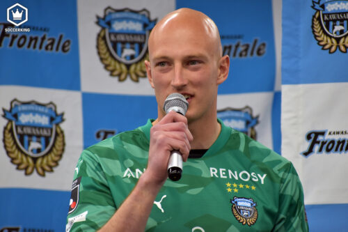 チームから今週から始動。川崎Fの雰囲気や印象について、ブローダーセンは「お互いベストを尽くして、すごい競争をしている。最初の日からビックリしました。それは優勝のために絶対に必要なこと」と語る。「このチームの力になれるように、全力で全てのシュートを止めたい。無失点試合も多くしたい」と意気込んだ。